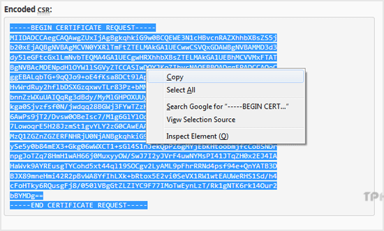 Copy the code from-----BEGIN CERTIFICATE REQUEST-----